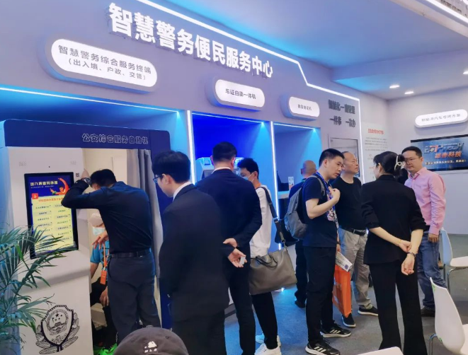 UG环球视讯ug科技以信息化、智能化手段改革服务模式,大胆创新,打造集全系列智慧车驾管自助服务设备的智慧无人车管所服务大厅:60秒制证的《车证自助一体机》、照相及多警种多业务一机通办的《警务综合服务一体机》、一键批量高速制取驾驶证的《批量制证机》,给予了“群众便捷、民警赋能”的智慧警务民生服务,吸引了众多观展嘉宾参观研讨。