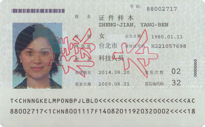 本式台湾居民来往大陆通行证资料页
